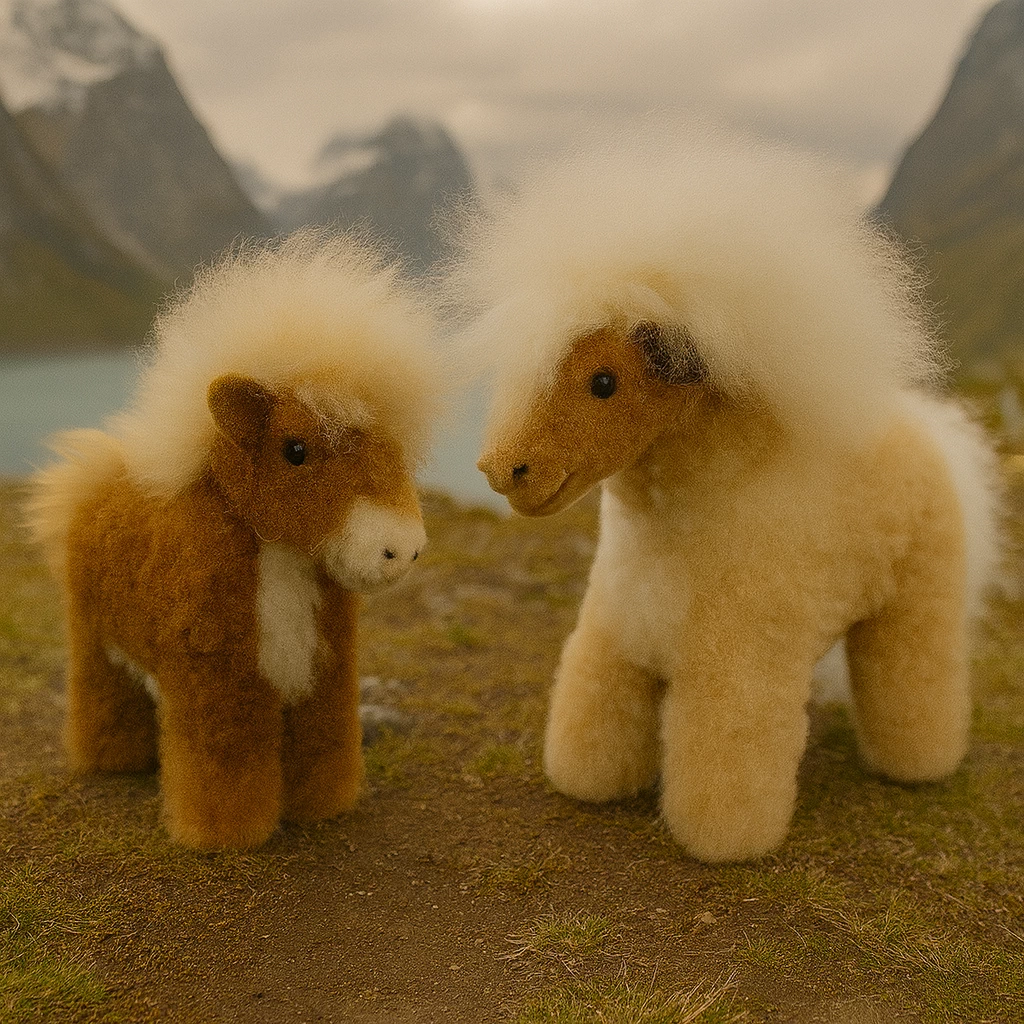 These plush horses are artisan-crafted from authentic alpaca fiber, offering a luxuriously soft feel and timeless appeal.